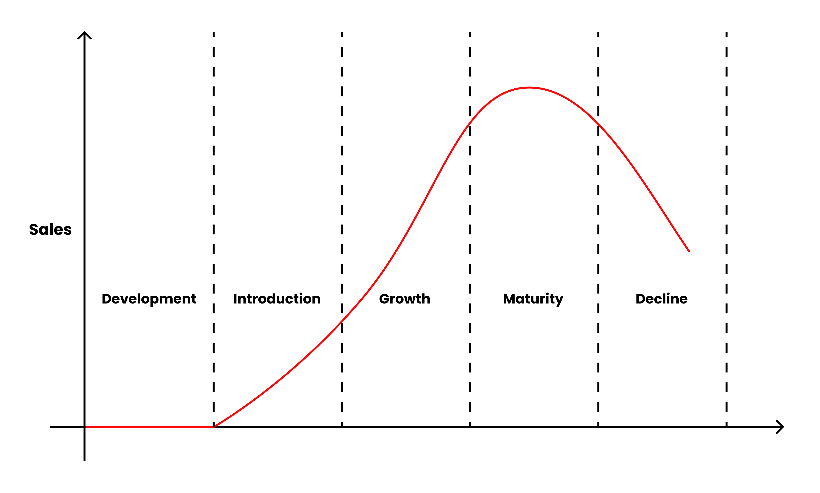 Products, like people, have life cycles. There are five stages: development, introduction, growth, maturity, and decline.